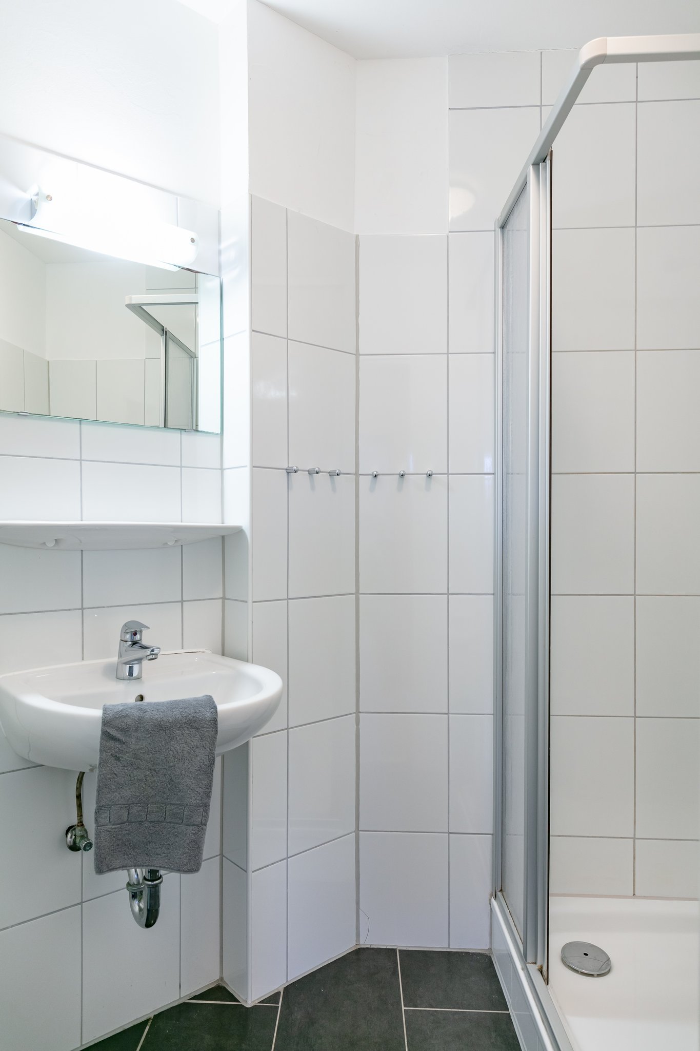 Das Appartement E001 ist eine helle Wohnung mit einem Hoch- und Doppelbett. Dieses Appartement hat ein separates Badezimmer mit Dusche. Außerdem steht Ihnen ein Wohn- und Essbereich mit Küche zur Verfügung. Die Einbauküche ist mit einem Herd, einer Geschirrspülmaschine, einem Kühlschrank mit Gefrierfach sowie einem Backofen und einer Kaffeemaschine ausgestattet.