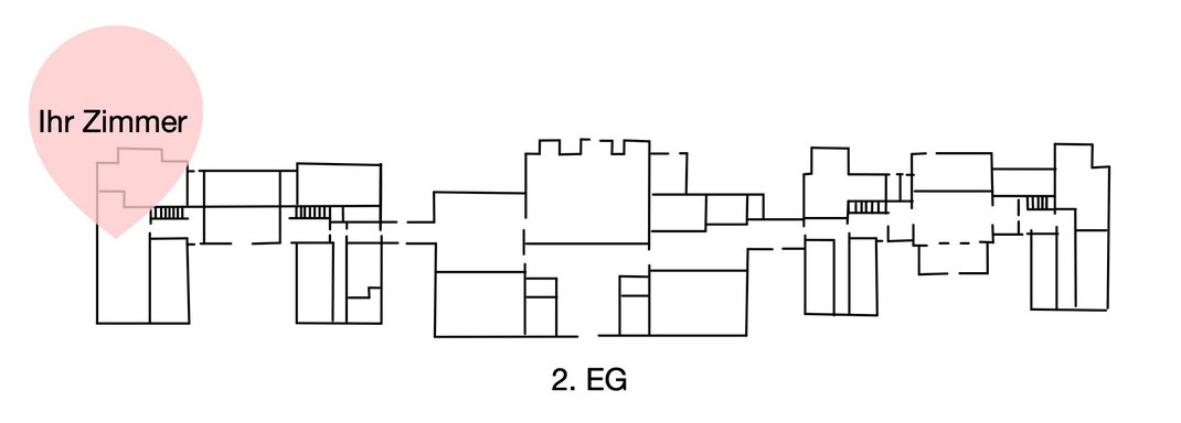 Das Doppelzimmer mit Küche E202 hat 23 qm und liegt im zweiten Geschoss auf der linken Seite.