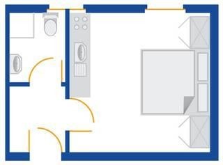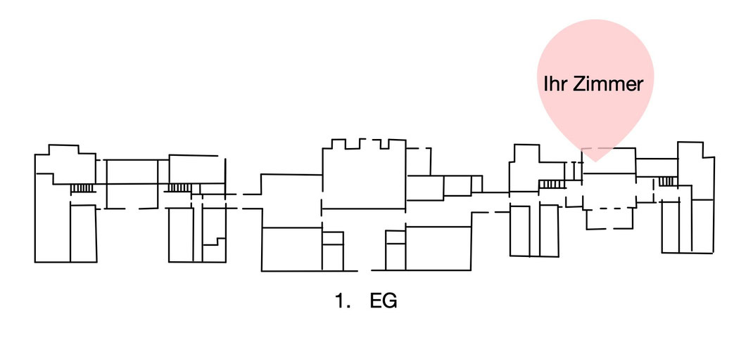 Das Doppelzimmer mit Küche G102 hat 23 qm und ist auf der rechten Seite, in der ersten Etage zufinden.