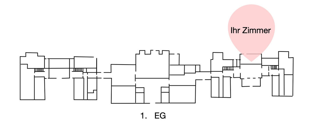 Das Zimmer G103 hat 26 qm und liegt im Haus Loccum auf der rechten Seite, in der ersten Etage.