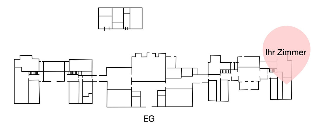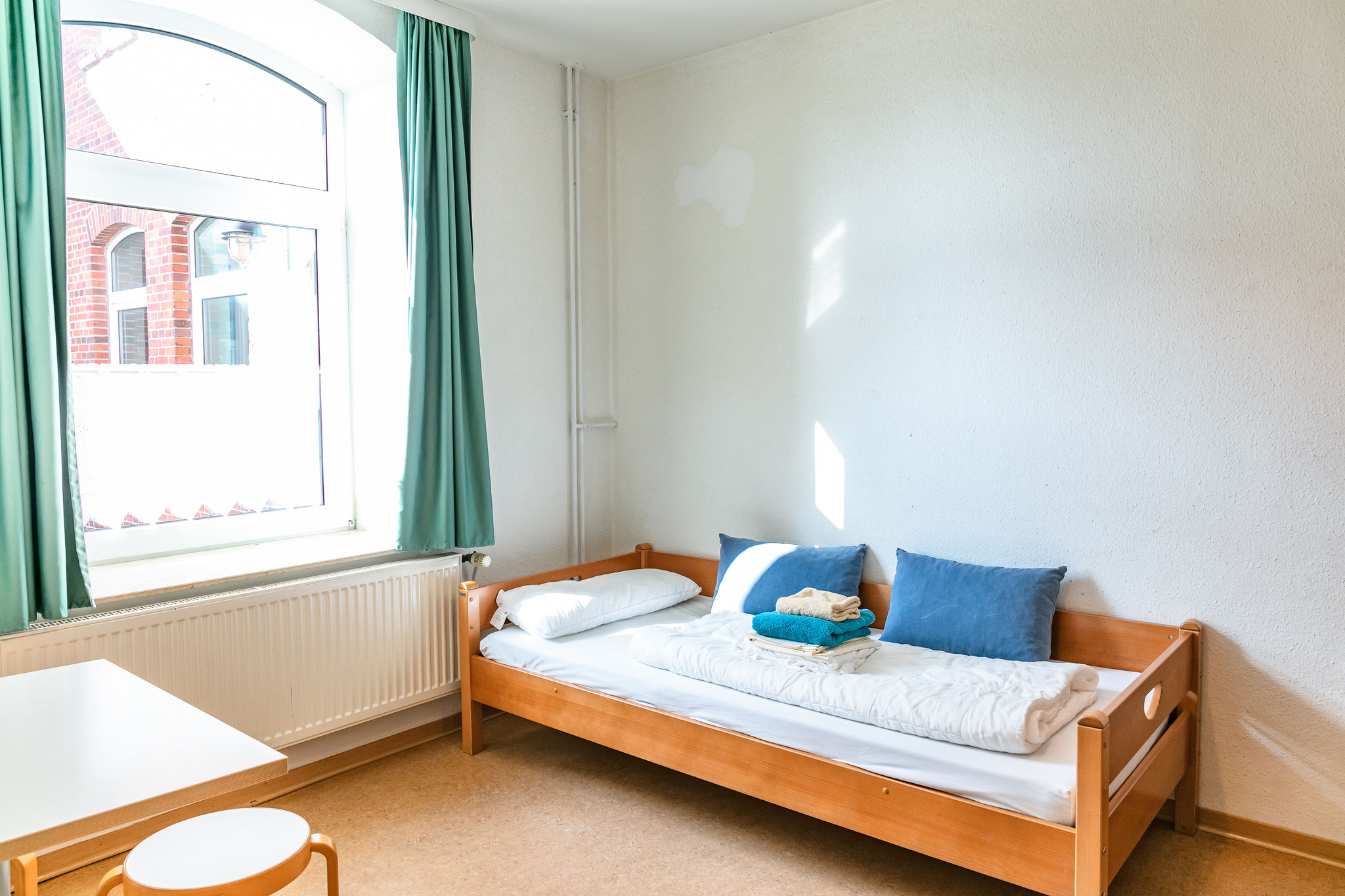Das Zimmer H004 hat 41 qm und liegt im Haus Loccum auf der rechten Seite, im Erdgeschoss.